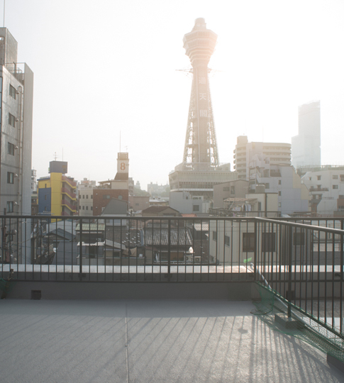 在桃李SQHOOL正對面是充滿昔日風情的大阪地標通天閣。20世紀初期,受到大阪博覽會的人潮以及電車開通的影響,便模仿巴黎的都市計畫來設計街道,並建造通天閣,一舉成為當時最大的遊憩區,然而進入昭和年代後,其他地區陸續開發,人潮不再,一切猶如時間靜止被停留在那一刻。如今附近成為庶民美食街,保留著有懷舊感的咖啡館、串炸、以及站著品嘗的立食小吃與將棋店。
