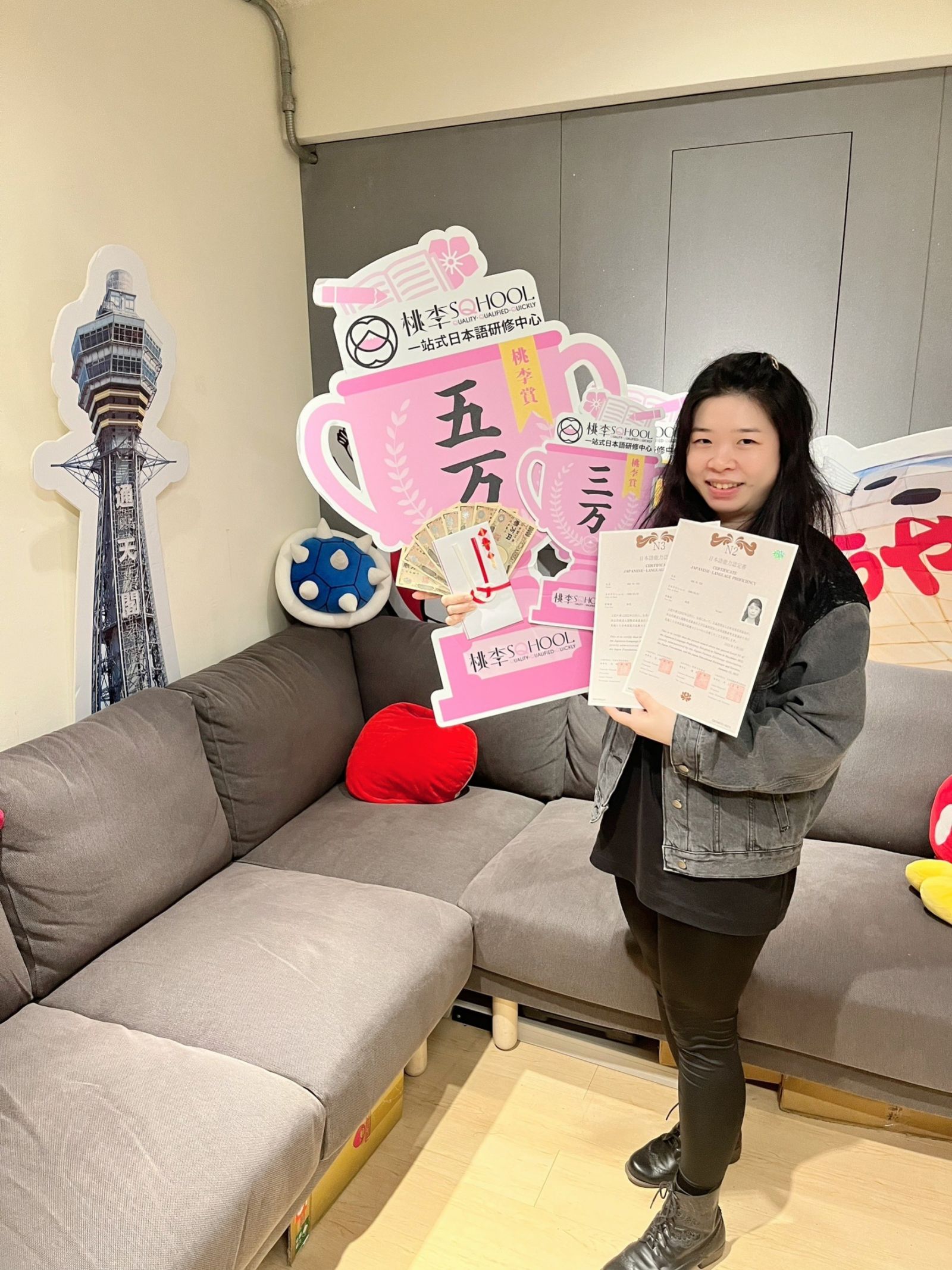 會想開始學習日文的原因是在人生第一次自助旅行,也是第一次踏上這個充滿各種地方文化及風俗民情的日本,雖然只為期了短短的六天,但卻讓我被深深吸引在文化與藝術的陶冶中,讓我想更深入了解其中更多的歷史含意。想了解一個國家,就必須先擁有溝通的橋樑-語言,在網路上比對無數的課程與學校,最終選擇了「桃李」!除了每日課程時數多了一倍的時間之外,老師們也是全日語教學,教室也鄰近超市地鐵及商圈,重點是宿舍和教室為同一建築,大大省去交通時間和交通費,還能和同學有更多的時間一起學習交流,不浪費珍貴的三個月!