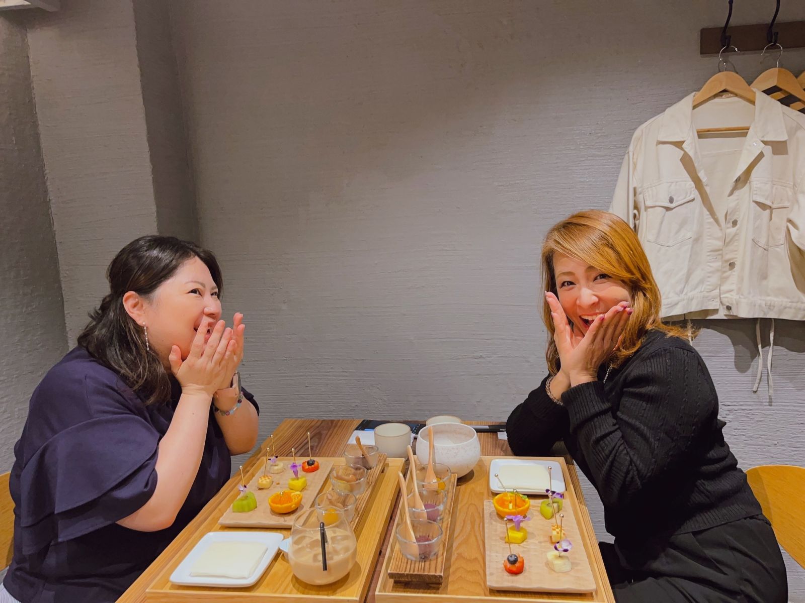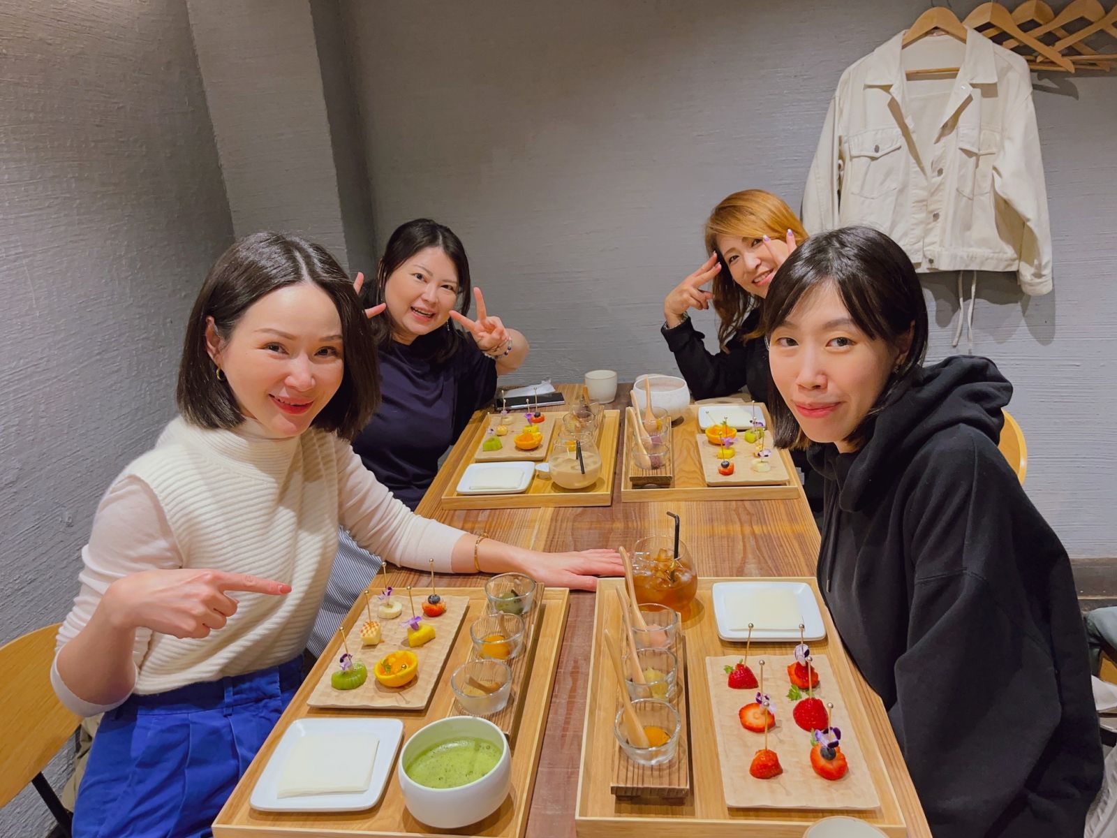 選好水果和餡料後,店員さん會擺好盤後送上桌,每一片水果都會精細的雕花,以各種可愛的方式呈現,完全就是充滿PINK PINK少女心的體驗,連老師們都露出少女式的驚呼聲,每個人都捨不得下手,光拍照就花很多時間。