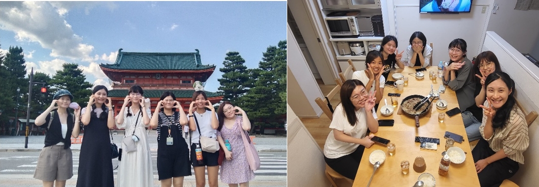 最後,我覺得我很幸運,人生首次的短期留學是訂在我最喜歡的夏天(日本的藍天白雲好分明好美!)、遇到很棒的老師(森下、岡崎、宮尾、黑岩老師)及在日協助我們日常所需非常多而且超友善的姚桑、馬桑、馬修桑,還有聊天課對我們充滿耐心跟善意的老師們,最後我覺得很讚的同學!清一色是女生而且彼此年齡相仿,讓住宿時光像是女子寮一樣放鬆。與妳們一起外出過的八阪神社、女子抬轎、平等院、下鴨神社御手洗祭、淡路二次元之森、有馬溫泉、姬路城、尼崎神社女巫體驗、課外授業(天橋立、伊根、環球影城),以及吃飯、採購、逛街、飯廳裡打屁聊天看電影的日常,還有為了日本回憶發表會的熬夜,都是想了嘴角就會上揚、最珍貴的回憶!