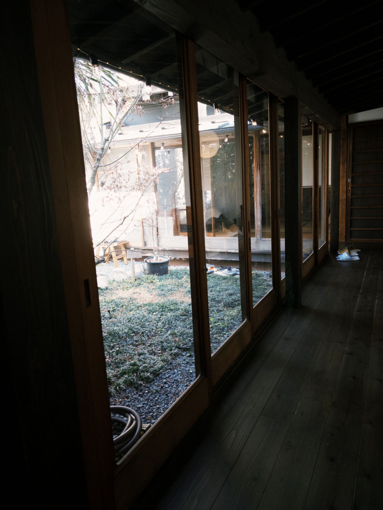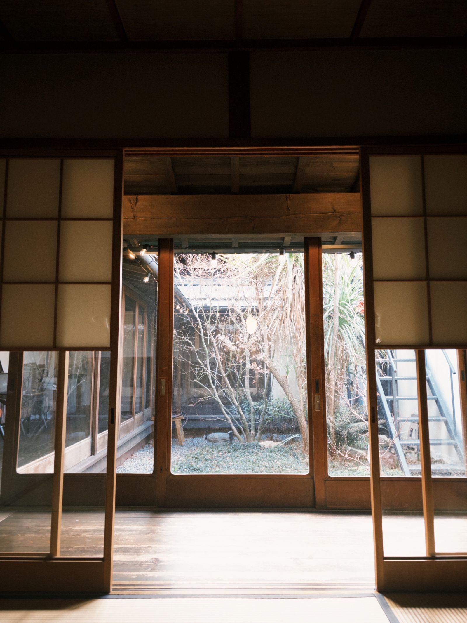 儘管看似平凡而微不足道的日子,我卻在之中緩緩找回自己,並重建生活的步調,肯定是因為這樣的空間才得以實現。不管是被光線照得通透的迴廊,還有我最喜歡的中庭,融合陽光與生活,或晴或雨,甚至是雪花飄落的日子,都能夠充分品味著季節的變化。每天早晨仰躺在床上,看著由天窗撒落的光,把房間一點一點地染上色彩;冷冽的冬天,被軟糯的被褥溫暖地包裹著;需要以某種角度,同時施以正確的力道,才得以順利開啟的木門;有幾處走過會凹陷的塌塌米地板,總是嘎吱作響。遍布歲月痕跡的古老民宅,我仔細地觀察每個細節,在日常中持續累積對空間的溫度和記憶。