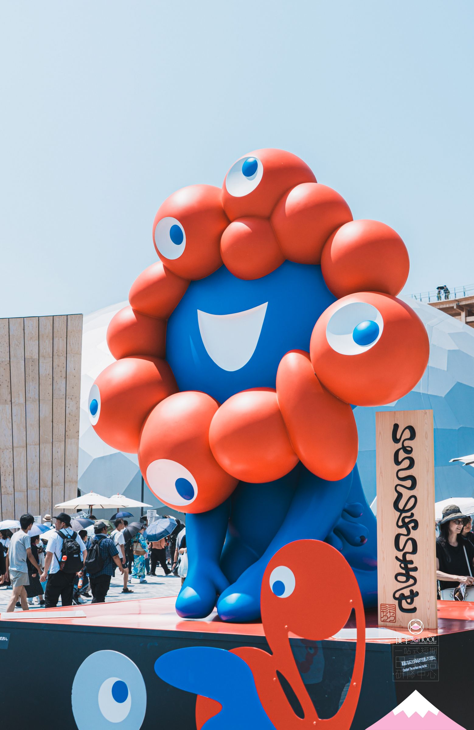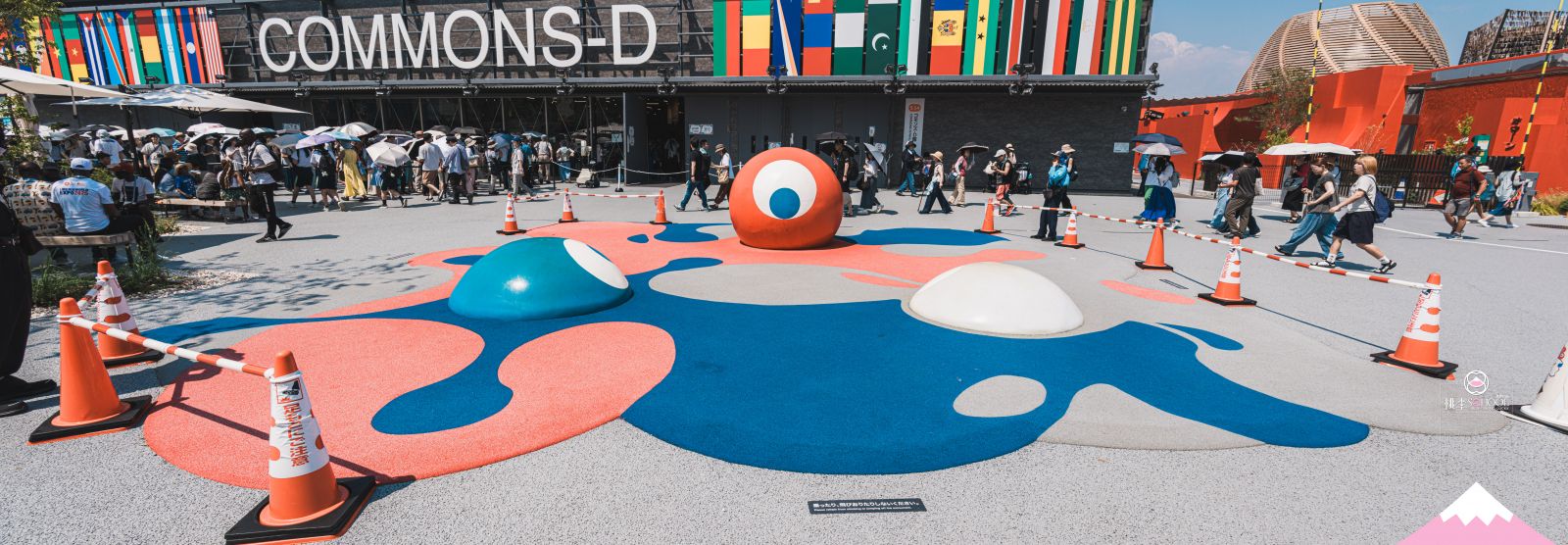 來到萬博,絕對不能錯過的任務,就是找到官方吉祥物「脈脈 (ミャクミャク)」!這隻藍紅相間、身上有許多眼睛的奇特生物,其設計理念源自「水」與「細胞」,象徵生命的多元性與連結。