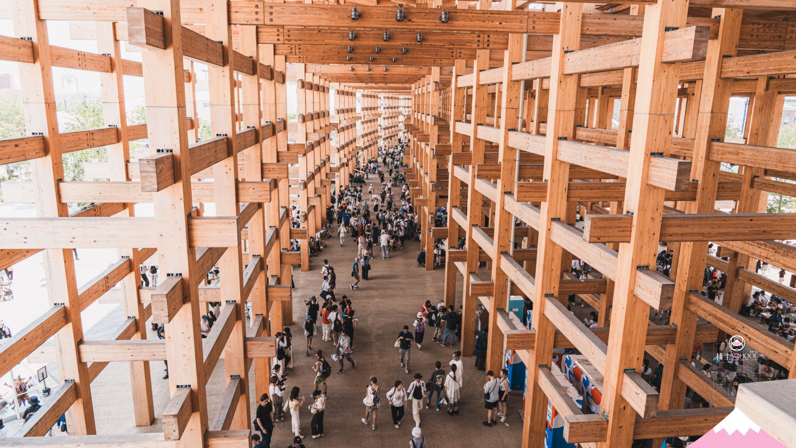 世界級規模:這座大屋根的圓周長約2公里,建築工法融合了日本傳統神社寺廟的「貫」接合技術與現代工法,展現了日本引以為傲的木工藝。