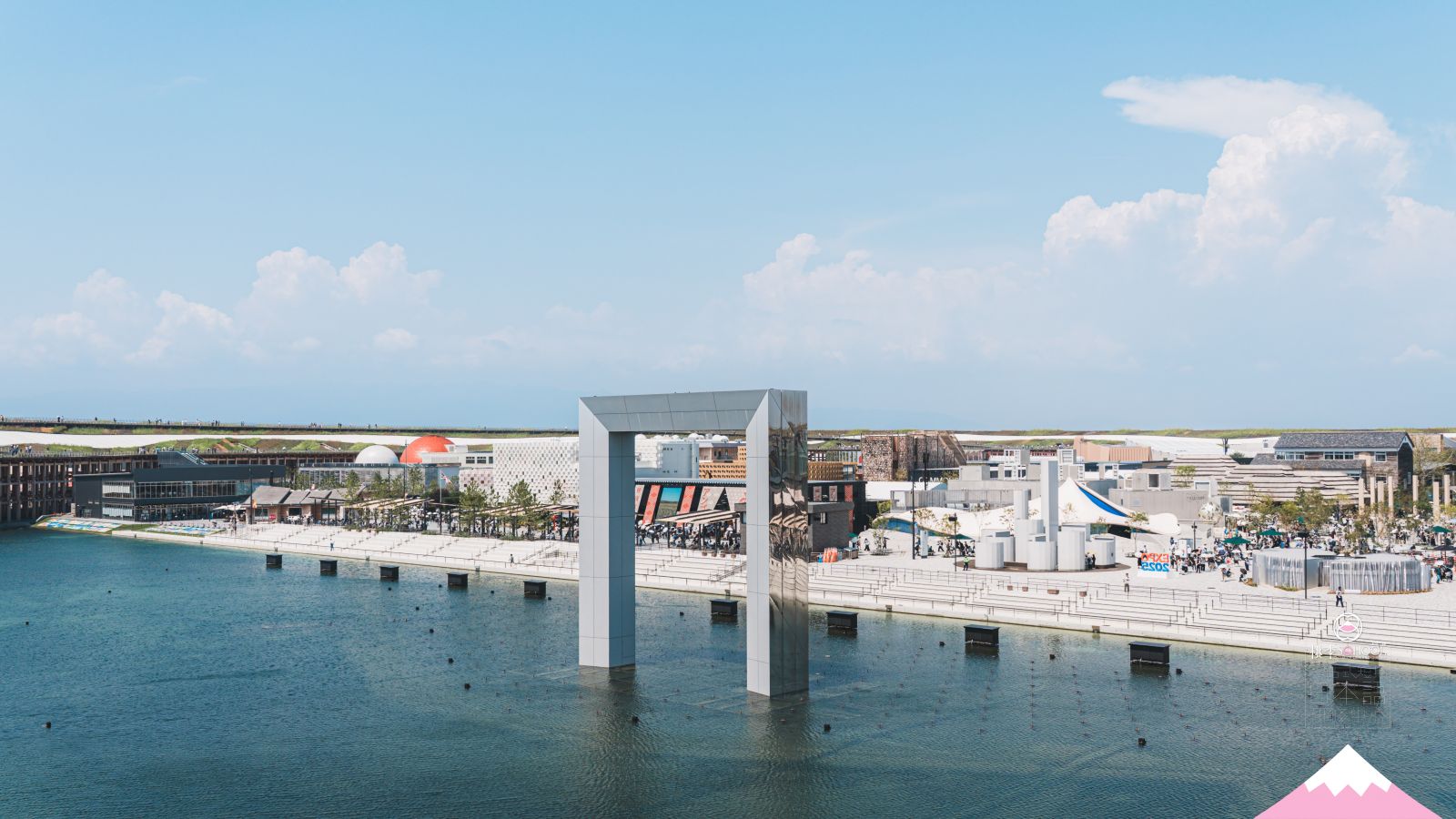 設計巧思:由日本知名建築家藤本壯介操刀,其設計理念為「多様でありながら、ひとつ (多元,而歸一)」。這圈環象徵著將全世界不同的國家與文化圈在一起,在充滿分歧的時代,傳達「連結」與「共存」的重要訊息。