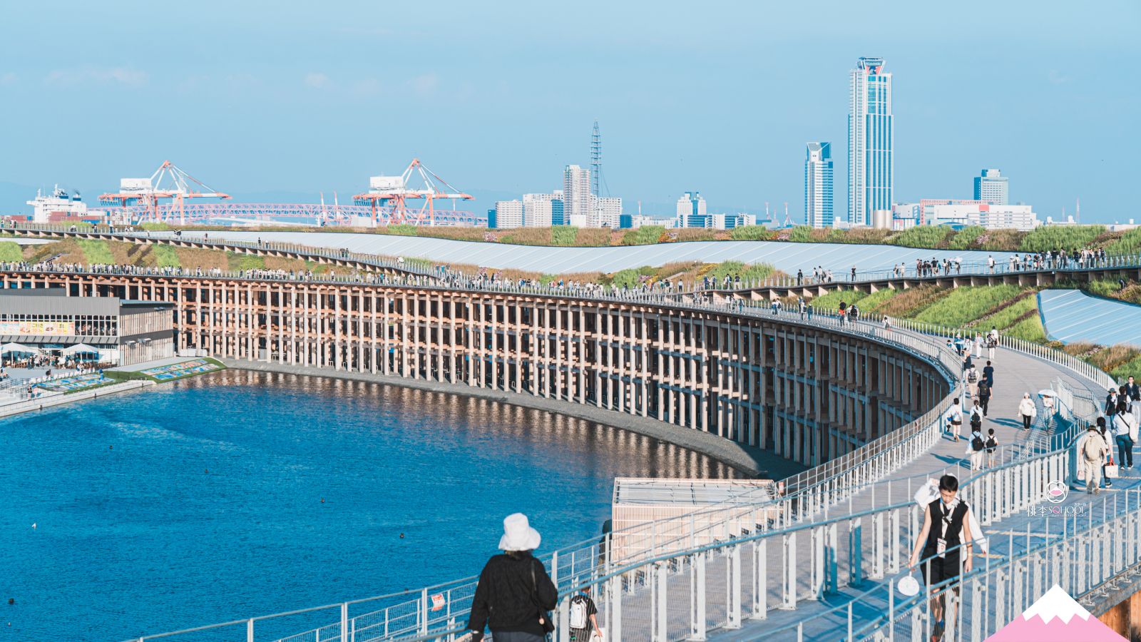 散步體驗:大家可以實際走上屋頂步道,從高處眺望整個會場,甚至是遠方的海景。這裡是絕佳的觀景台,也是感受萬博宏大格局的最佳地點。走在下方則能遮陽避雨,是串連整個會場的舒適動線。