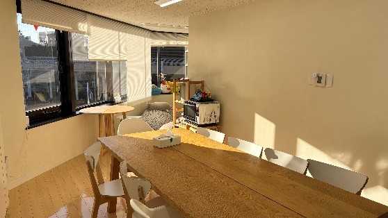 中午時大家都會在這邊排隊輪流微波便當,一起用餐~